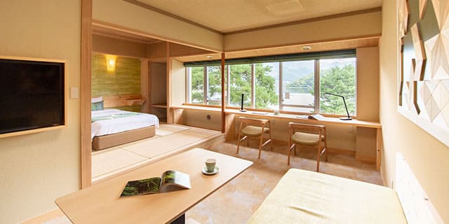 Our rooms are comfortably appointed and complemented by spectacular views of Lake Kawaguchiko, beautiful Mt. Fuji or with relaxing private hot spring bathtubs for your own private use. All of the rooms are supported with the outstanding personal care and comfortable amenities you deserve for your vacation.
