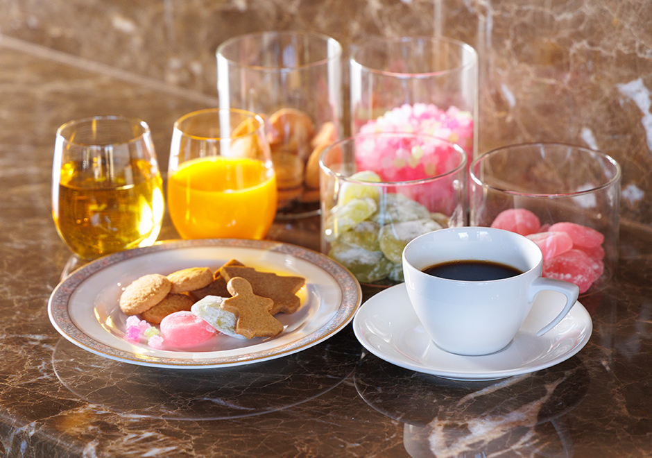 14:00~21:00 ※14:00~18:00まではお菓子類もご用意しております。 ※客室にはお茶菓子をご用意しておりませんので、お部屋にお持ちいただくこともできます。 ※軽食のご用意はございません。 |
